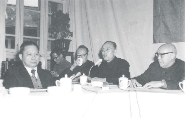 1980年1月,华侨大学董事会成立,许东亮先生(右二)出席并出任董事会副董事长。