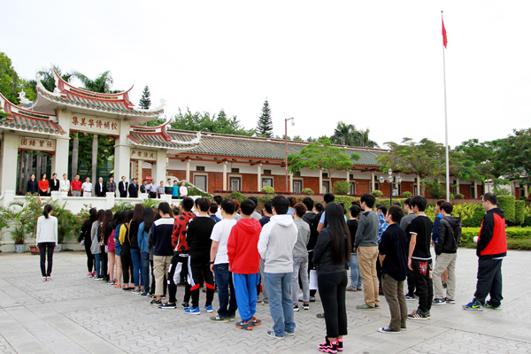 华文学院升国旗仪式现场(邱碧惠 摄)