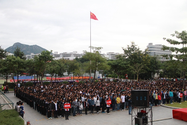 校领导贾益民、关一凡、朱琦环、徐西鹏、刘斌、曾路、彭霈,校长助理张云波,来自海内外各地的校友侨友,各学院党政负责人、辅导员,以及2015级全体新生参加了升国旗仪式。