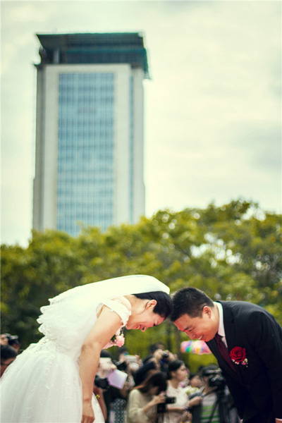 2006级校友汤钦洪与爱人李小丽是“80裸婚夫妇”。汤钦洪说:“我们认识不久就去领证了,属于先斩后奏的那种!今天我们回母校补办一个婚礼,也算弥补了一个遗憾吧。”提起集体婚礼,新娘李小丽说,“集体婚礼可以和大家一起分享自己的幸福和喜悦,比那种追求排场的婚礼更有意义。”