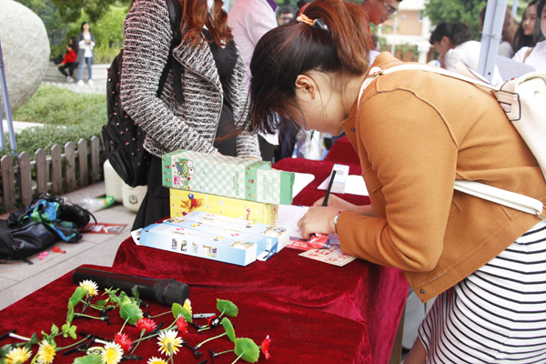 11月10日下午,我校“爱无疆”海丝文化公益赶集活动在泉州校区廖承志广场举行。活动以“公益为主,文化相随”为主题,号召境内外学生“文化不分民族,公益跨越国界”。