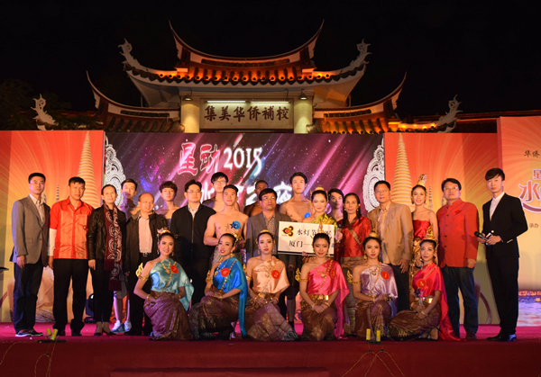 11月28日晚,龙舟池畔,华侨大学华文学院灯光璀璨,这里正在举行星动2015水灯之夜暨水灯小姐/先生大赛。海内外师生们共品东南亚美食,观看民族舞蹈、泰拳等表演,评选水灯小姐和水灯先生,在龙舟池畔放水灯,欢度泰国水灯节。