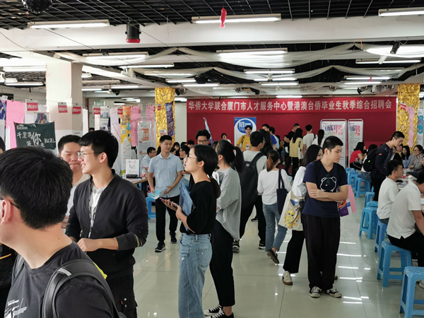 三、境外生就业工作精准开展。学校高度重视境外生就业工作,11月5日两校区综合招聘会均开设境外生招聘专区,泉州校区设置“台籍毕业生招聘专区”、厦门校区设置“港澳台侨招聘专区”,并引进厦门银行股份有限公司、泉州银行股份有限公司、碧桂园智慧物业服务集团股份有限公司泉州分公司、厦门国美电器有限公司等共计31家优质企业入校招聘境外生。11月13日,学校联合香港中企协等单位举办“2019年青春试翼校园招聘说明会”,引进中国银行(香港)有限公司、香港中国旅行社有限公司、华润创业有限公司、招商局船务企业有限公司、工银信用卡中心(国际)、上海华讯网络系统有限公司、用友软件(香港)有限公司、中国人民保险(香港)有限公司等共10家企业入校宣讲。11月24日至28日,还首次开展了华侨大学“港澳台侨学生骨干就业服务计划”,带领来自中国香港、澳门、台湾等地区和马来西亚、柬埔寨等国家近50名境外生走进粤港澳大湾区走访企业,感受大湾区的发展。