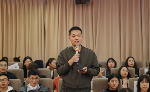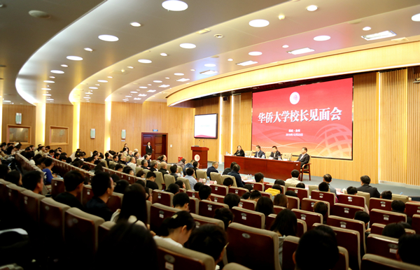 徐西鹏认真听取并详细记录同学们的提问,就他们关心的问题亲切交流。他阐述了新时期华侨大学的定位和办学目标,分析了学校当前面临的挑战和机遇,提出了对学校文化建设和创新型人才培养问题的思考。