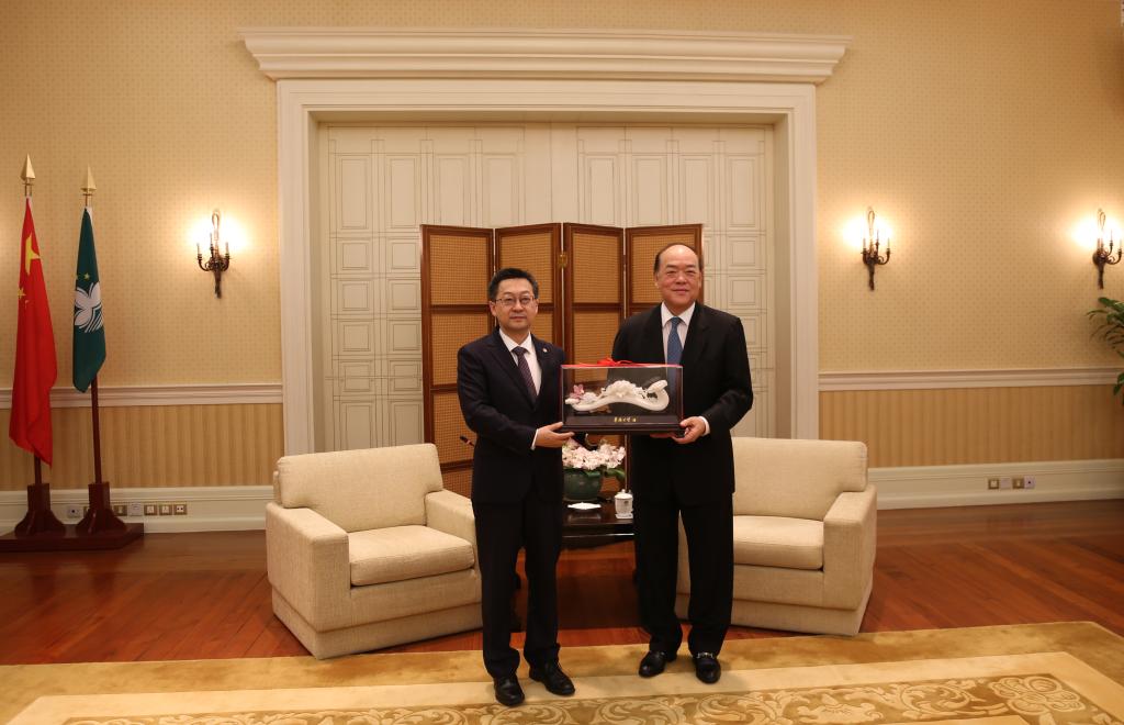 1月13日上午,澳门特别行政区行政长官贺一诚在澳门特区政府总部会见了校长徐西鹏一行。
