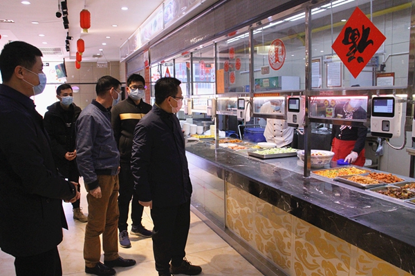 紫荆二餐厅是厦门校区寒假期间的供餐餐厅,徐西鹏一行检查了该餐厅的假期供餐保障情况,详细询问餐厅负责人物资储备、菜品菜谱、疫情防护等方面的工作细节。