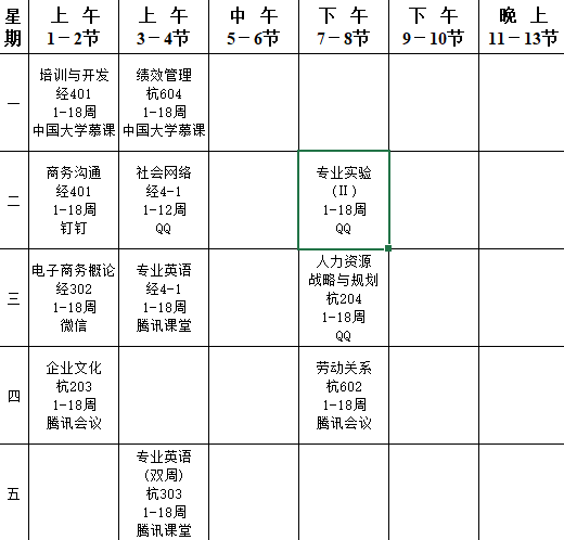 2017级人力专业课程表