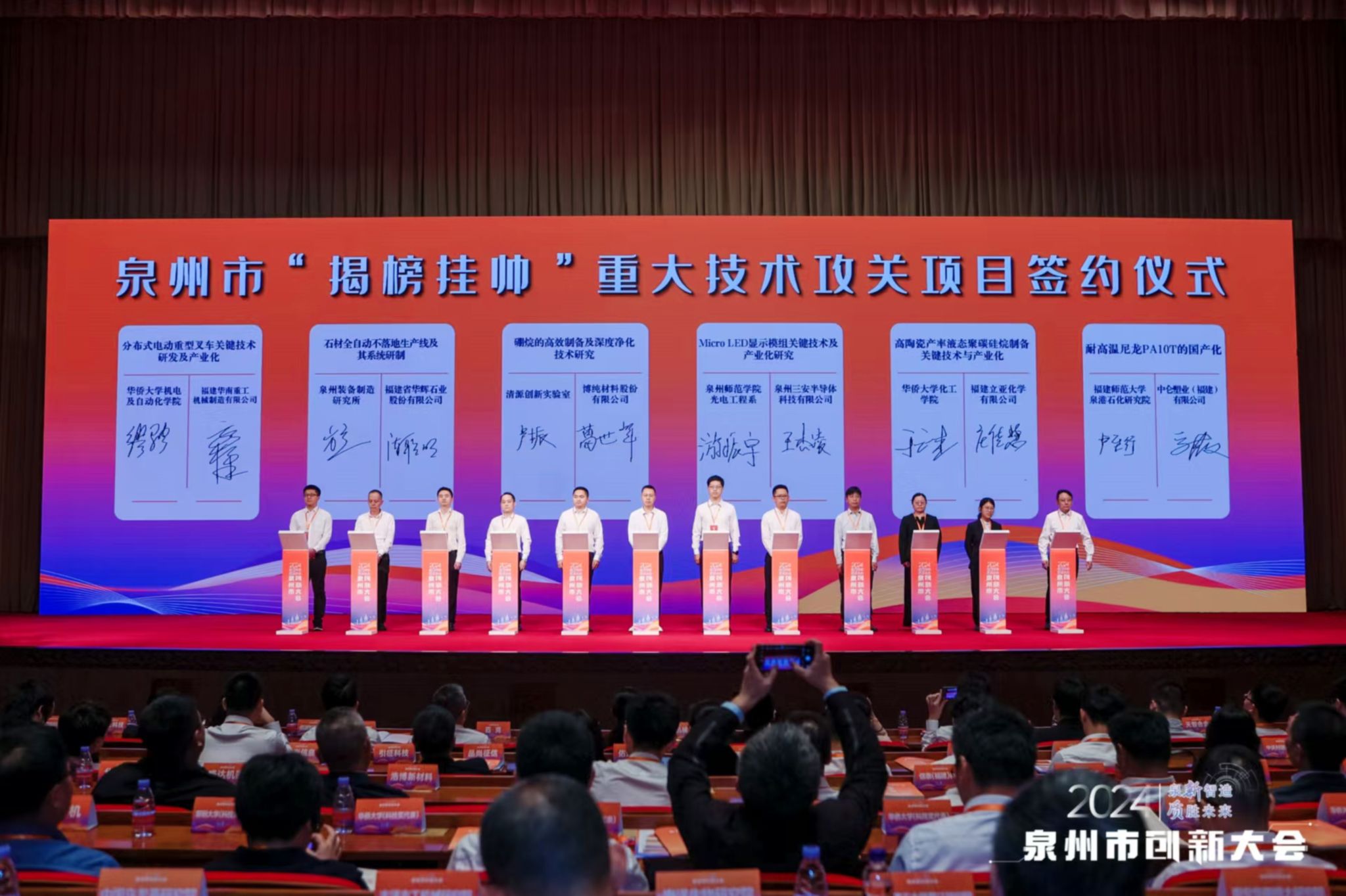 大会还举行泉州市“揭榜挂帅”重大技术攻关项目签约仪式。其中,我校机电及自动化学院与福建华南重工机械制造有限公司合作签约“分布式电动重型叉车关键技术研发及产业化”项目,化工学院与福建立亚化学有限公司合作签约“高陶瓷产率液态聚碳硅烷制备关键技术与产业化”项目。据了解,自2021年泉州市启动实施“揭榜挂帅”重大科研专项以来,我校已承担该类项目9项,累计获批市级财政经费支持共1470万元。