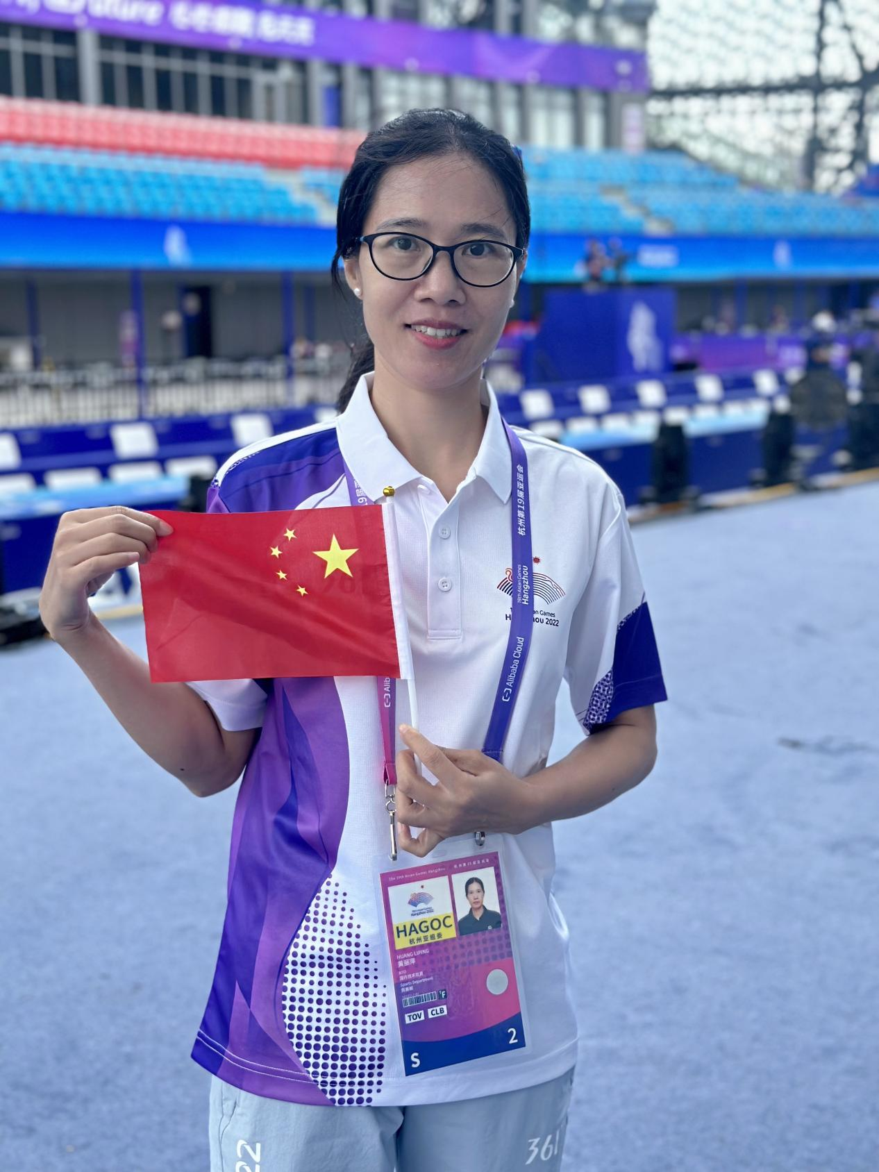黄丽萍老师在亚运会现场(图:体育学院)