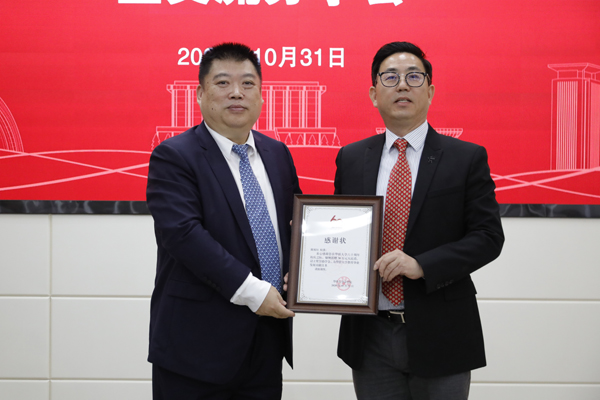 彭霈希望法学院将陈展垣校董对学院的支持转化为发展动力,助力学院健康发展;希望广大学子以陈展垣为榜样,勤奋学习、努力进取,回报社会;希望陈展垣校董多回学校走走看看、访师探友,多为母校的发展献计献策、传经送宝,在学校新甲子的征程中一如既往地支持母校、关爱母校。