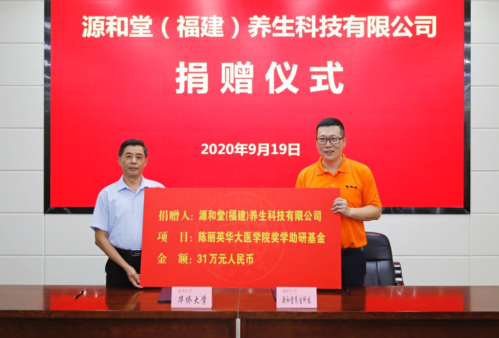 在我校建校60周年之际,工商管理学院EDP总裁班校友、源和堂(福建)养生科技有限公司董事长尤文辉向医学院捐资31万元人民币,设立“陈丽英华大医学院奖学助研基金”,用于促进我校医学院发展,鼓励师生积极参加科技创新和科技成果转化。