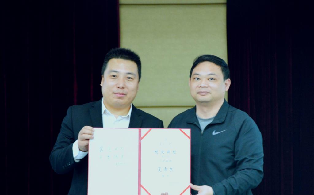 交流会伊始,主持人向大家简要介绍了校友讲坛的意义。随后,黄建烽向夏希东颁发了主讲嘉宾证书。接着,夏希东就“职业选择与求职案例”------凭说话就能让你为之疯狂,从考研、考公、创业、就业四个方面跟我们分享了他对大学生未来选择的建议。