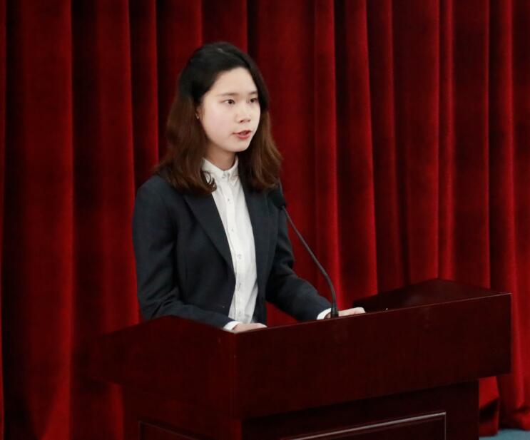 文学院2014级汉语言文学许月代表新受聘的校友联络员上台发言,表示要坚守校友联络员的光荣使命,担负责任,尽自己的微薄之力为校友服务,为推进学校的校友事业发展做出努力。
