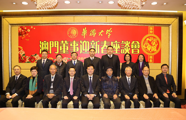 华侨大学2018年澳门校董迎新春座谈会1月11日中午在澳门举行,校长徐西鹏、副校长曾路一行与在澳校董齐聚一堂,互祝新春、共叙发展。