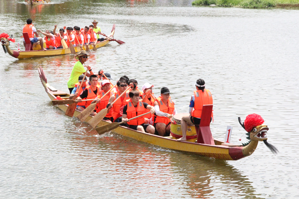 鼓声阵阵,数舸争流。5月29日,2017海丝侨界青年端午龙舟赛在泉州惠安黄塘溪鸣锣起桨,来自中国、美国、澳大利亚、菲律宾等10多个国家和地区的48支龙舟队挥桨勇争先,竞渡争上游。华侨大学泉州校友会、华侨大学留学生同学会(华侨大学留学人员联谊会)受邀参赛,共庆中国传统端午佳节。