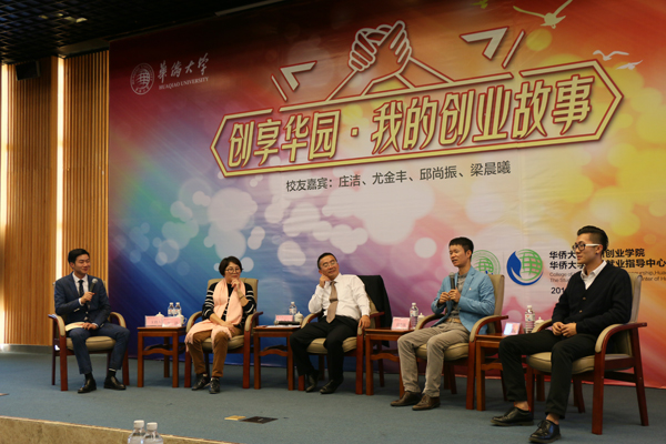 11月30日晚,蝌蚪生态空间创始人庄洁、厦门亿唐科技有限公司总经理尤金丰、厦门临家餐饮投资管理有限公司董事长邱尚振、厦门趣动文化传媒有限公司总经理梁晨曦等四位杰出校友参加在陈嘉庚纪念堂四楼科学厅举行“创享华园——我的创业故事”活动,与同学们对话互动,畅谈创业的点滴。