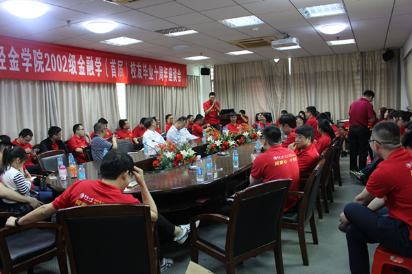 胡日东表示,作为金融学专业的第一届学生,2002级金融学子前来参加毕业十周年聚会是件令人高兴的事,大家十年来发展优异,事业有成,没有辜负老师的期望。胡日东还介绍了学院经济金融学科十年来建设所取得的成就,并为2002级学子送上了美好的祝愿。