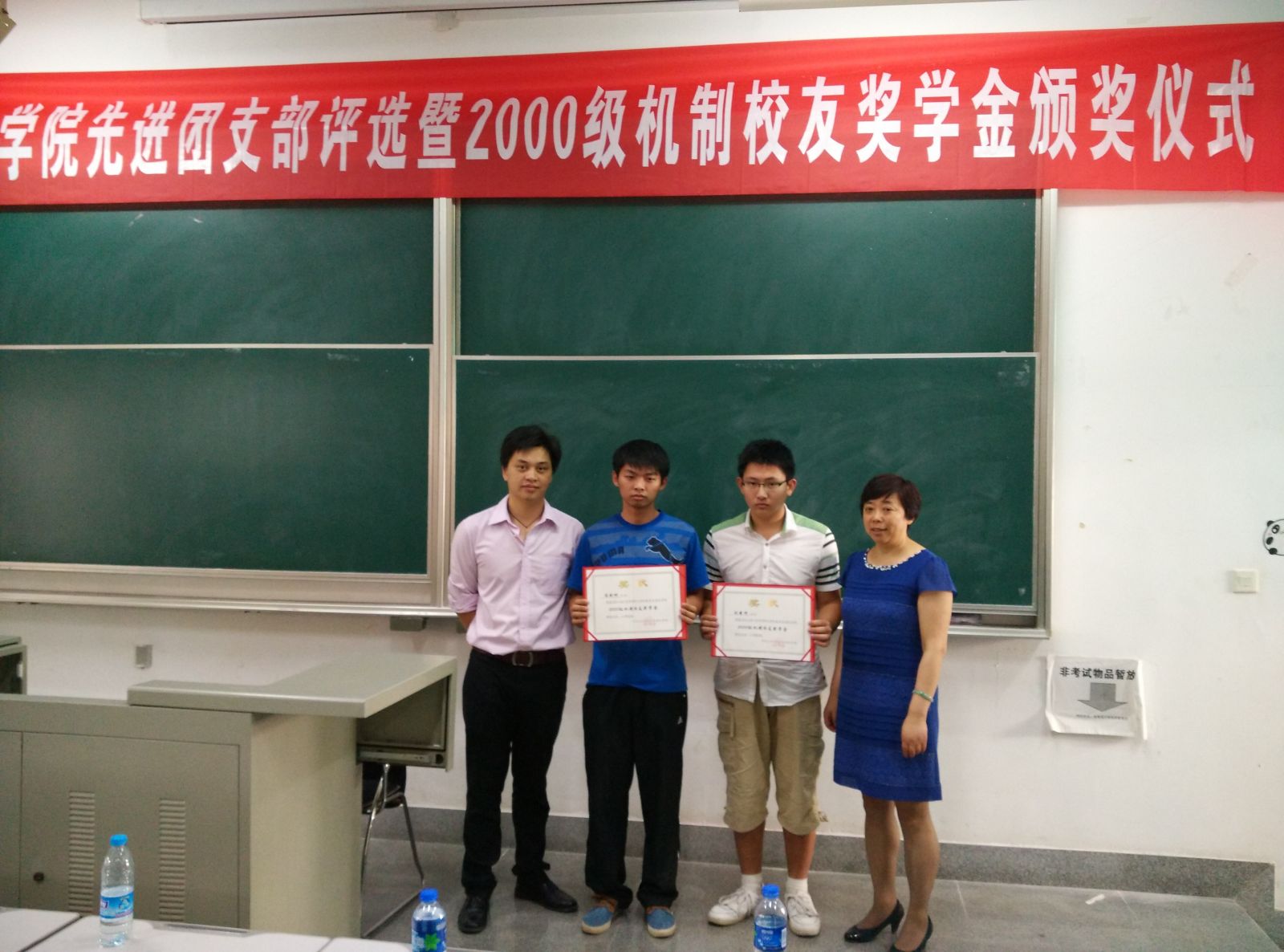 2015年5月12日下午,机电学院在C5-201成功举行2000级机制校友奖学金颁奖仪式。出席本次颁奖仪式的嘉宾有2000级机制班班主任于怡青老师、2000机制校友代表黄身桂老师等人出席了颁奖仪式,参加本次颁奖仪式的还有机电学院各班级的学生代表。