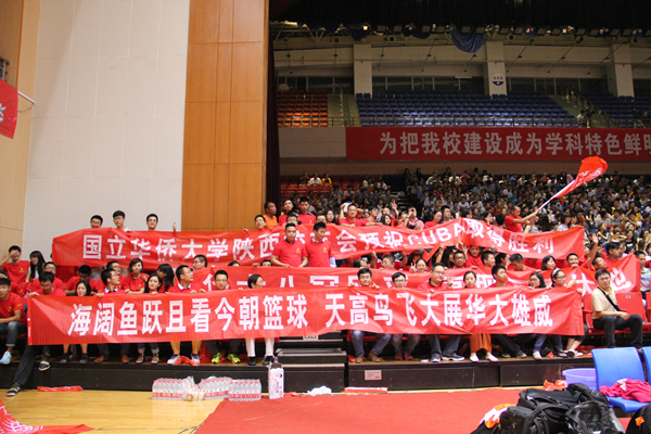5月28日晚,第十七届CUBA中国大学生篮球联赛最后一场四分之一决赛在西北工业大学翱翔体育馆开打。经过四节鏖战,华大男篮以60:54有惊无险战胜老对手清华大学,昂首挺进全国四强。上百位华侨大学陕西校友到场为母校球队加油助威。