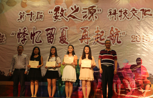 颁奖仪式6月6日晚在明德堂举行。93级校友、亿唐科技有限公司总经理尤金丰,数学科学学院副院长陈铭新共同为获奖同学颁奖。