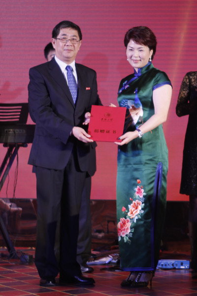 党委书记关一凡为吴琳琳颁授捐赠证书