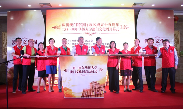 11月1日晚,在母校54周年华诞之际,由华侨大学澳门校友会主办,华侨大学校友总会、学生处、厦门校友会、建筑学院协办,福建高校澳门学生联合会承办的庆祝澳门特别行政区成立十五周年暨第四届澳门文化周在华侨大学厦门校区紫荆二餐厅开幕,来自澳门校友会、部分在校澳门学子以及部分华大师生等100多人集聚一堂,联欢庆祝。