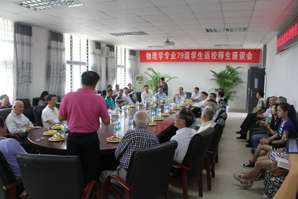 10月19日上午,79级物理学专业(现属信息科学与工程学院)校友毕业30周年共聚华园,在工学院二楼会议室举行师生座谈会。校党委书记关一凡出席座谈会并致辞,校友办、信息学院、人事处相关负责人,物理系80级杰出校友戚知青,物理系30余位79级校友及当年任课老师参加座谈。座谈会由华大校友总会理事、当年的学生会主席黄进及泛华学院院长、当年的团委书记陈庆俊共同主持。