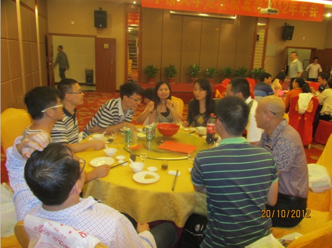 2012年10月20日,华大龙岩校友会在龙岩金穗酒店举办2012年“金秋庆团圆”年会,五十多位龙岩校友欢聚一堂,以座谈、搏饼、会餐、歌舞等方式联谊喜庆金秋。出席年会有来自龙岩新罗的校友,也有专程从永定、上杭、连城等县区的校友,还有专程从厦门赶回参会的校友;参会的校友来自各行各业,有刚毕业不久加入组织的新校友,也有11位的老校友参加,80高龄华大第一届老校友黄文昌也参加了聚会。