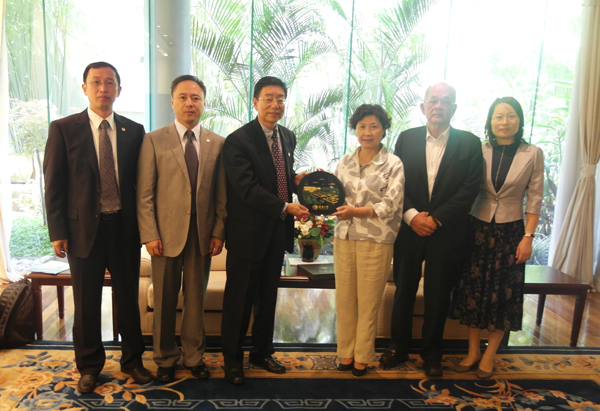 28日,校党委书记、校友总会会长李冀闽,校长助理曾路,校友与公共关系处副处长涂伟一行,以及华大澳大利亚校友会会长黄永聪到访中国驻悉尼总领事馆,受到总领事胡晓兰的热情接待。