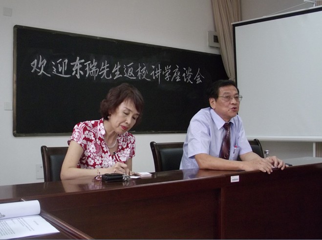 “这是我有生以来在华大第一次正式的讲座。”文学院知名校友东瑞先生如是说。9月18日下午,东瑞先生携同夫人蔡瑞芬女士返回母校华侨大学,在文学院二楼会议室举行了讲学座谈会,文学院副院长许总老师,文学院倪金华老师、毛翰老师、陈庆妃老师、马娟娟老师、黄立一老师和几十名同学一同到场听取了讲座。